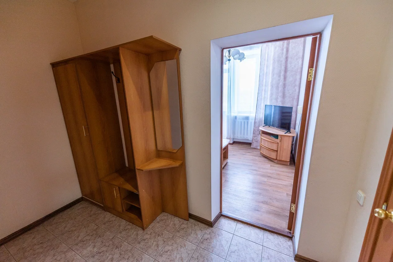 Оснащение номера: две односпальные кровати, прикроватная тумбочка, стол, стулья, шкаф, комод, диван, журнальный стол, телевизор, холодильник, чайный набор посуды, электрочайник
